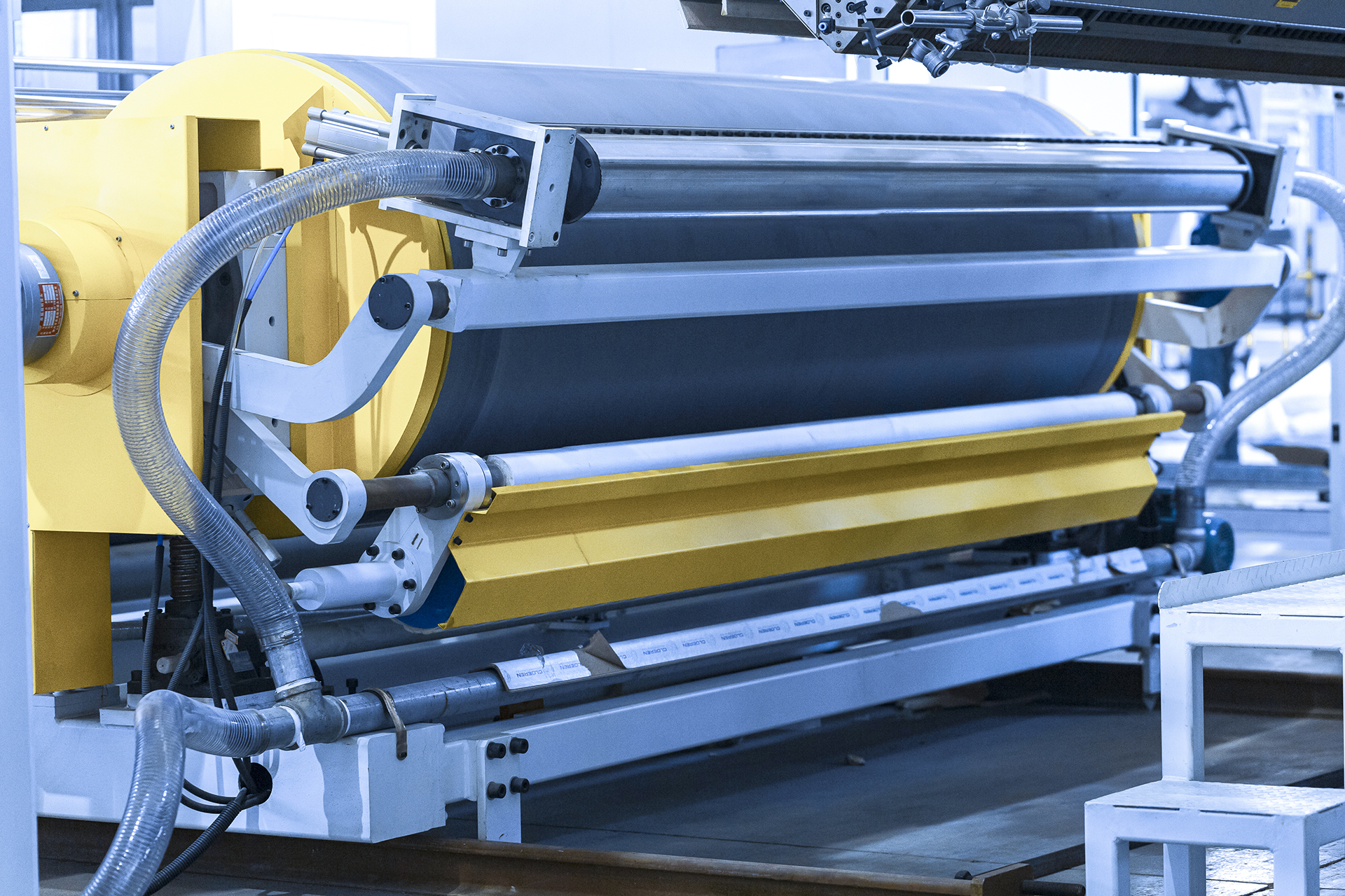 雙流道大直徑流延主冷輥,結(jié)構(gòu)簡單,由于設(shè)置了進水導(dǎo)流器和出水導(dǎo)流器,可有效降低主冷輥內(nèi)部的流動阻力,能夠使得流入輥筒內(nèi)的冷卻水量更加均勻,提高主冷輥的送水能力,提高主冷輥冷卻效率,有效提高輥筒表面的溫度均勻性,節(jié)約能耗。